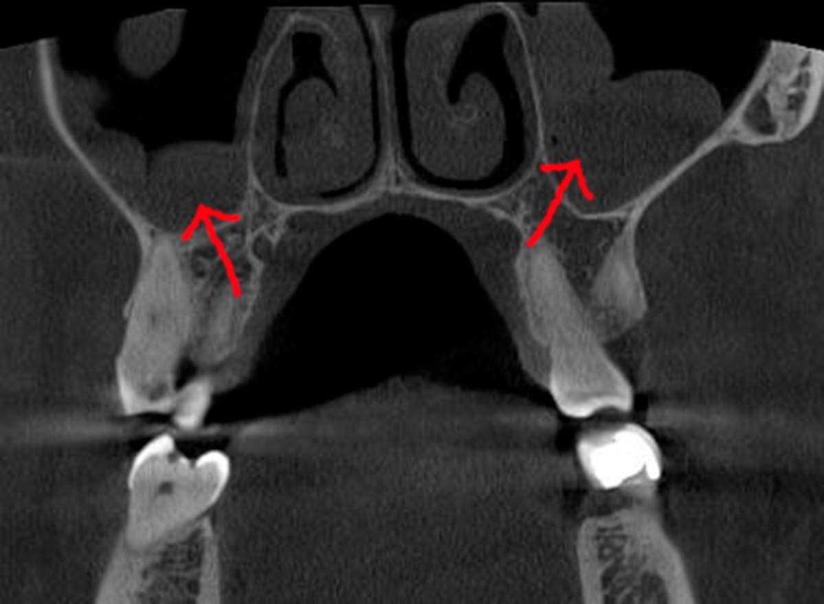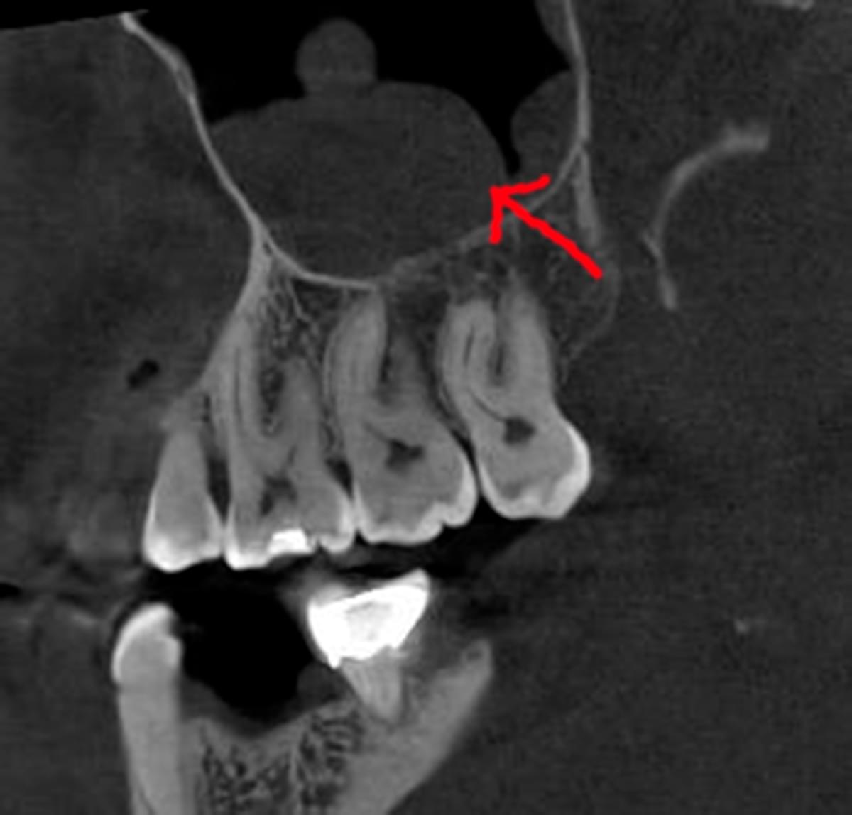 Часто причиною зубного болю є гайморит, і навпаки — причиною запалення пазух є хворий зуб. На звичайному знімку пазуха виглядає як темна пляма. На КТ ми бачимо стан слизової, наявність кіст або сторонніх тіл (наприклад, залишків пломбувального матеріалу), що критично важливо для правильного діагнозу.