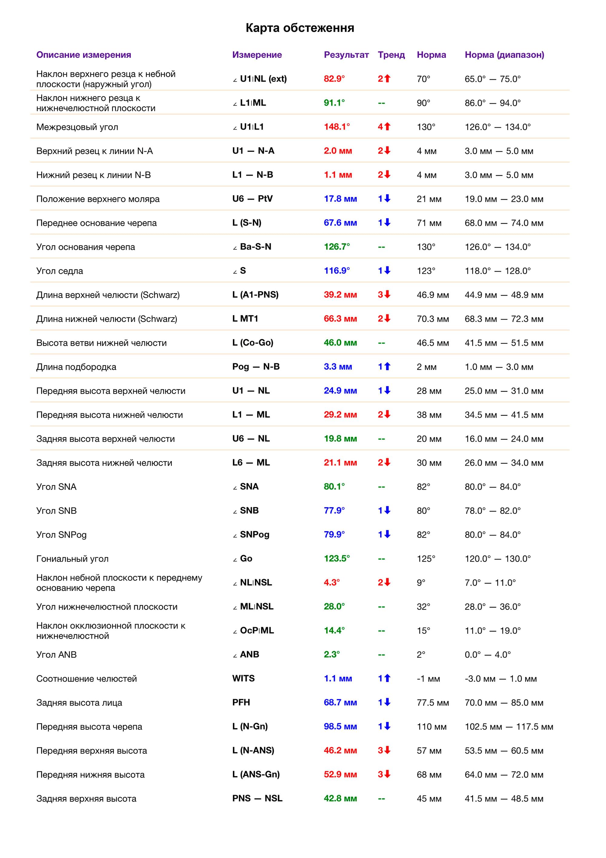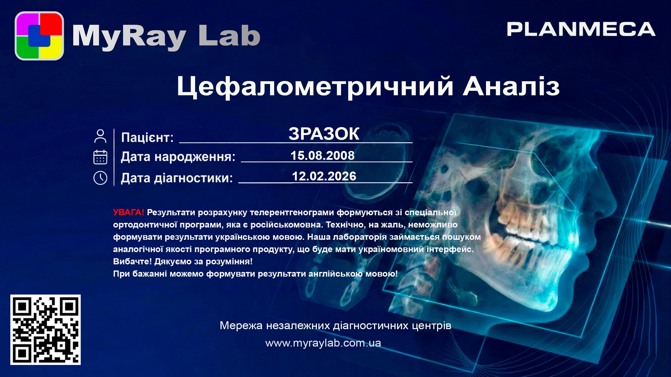 Це окрема діагностична послуга, під час якої лікар-діагност оцифровує знімок, розставляє анатомічні точки та вимірює кути і відстані між кістками черепа та зубами.