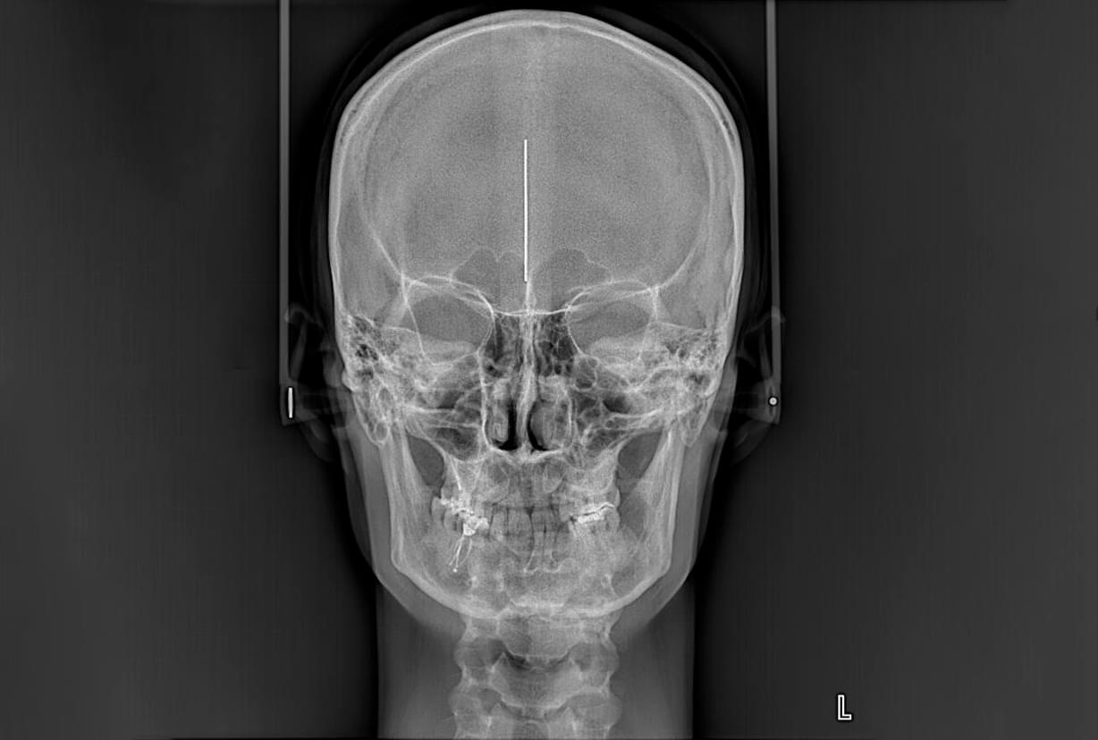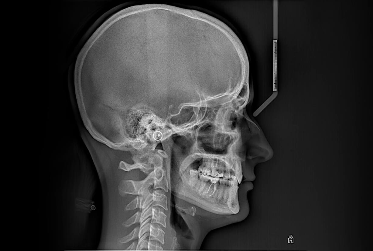 Телерентгенограма — це детальний рентгенівський знімок черепа, зроблений з певної відстані, що дозволяє отримати зображення, максимально наближене до реальних розмірів (без спотворень).